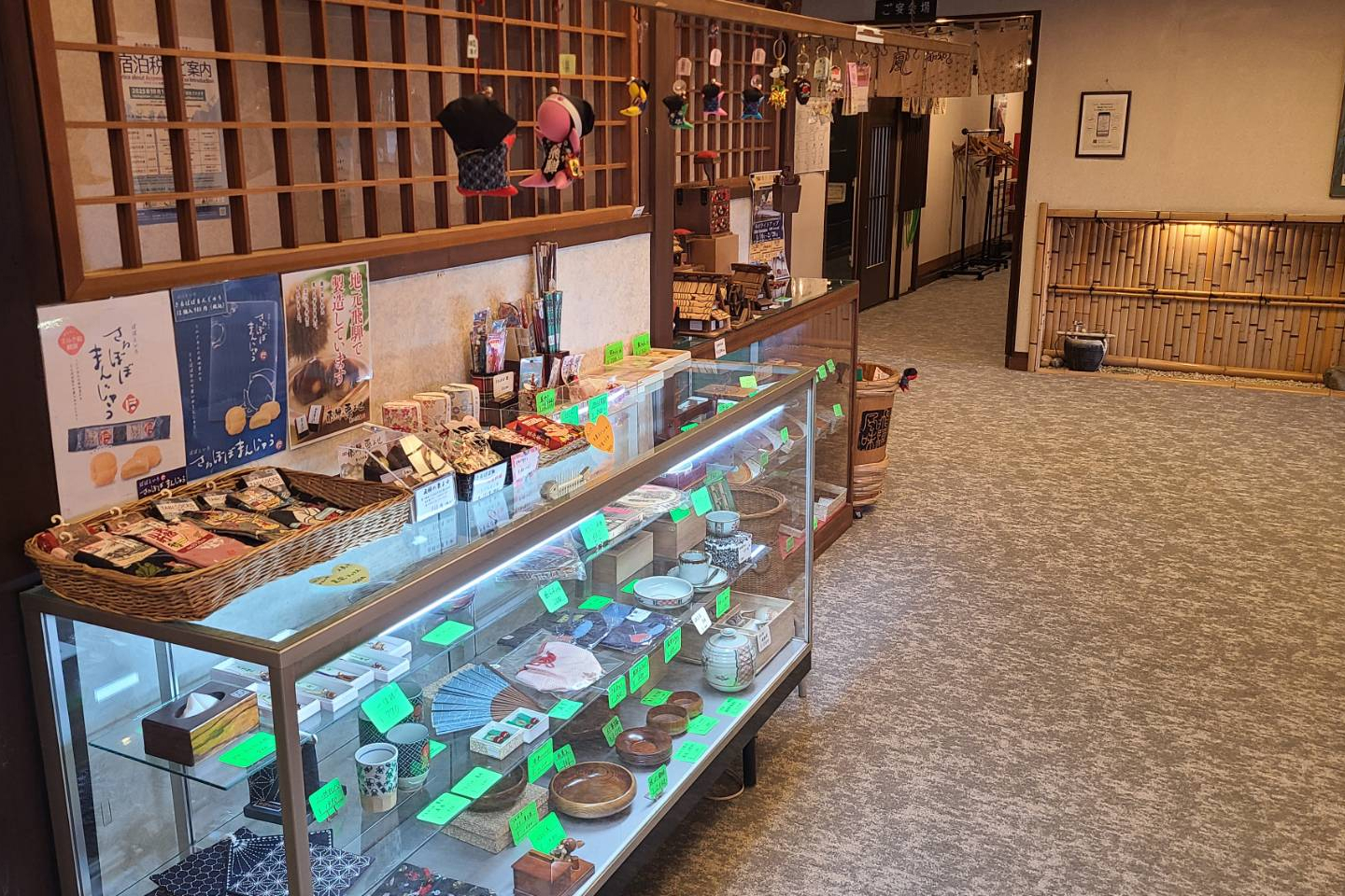 お土産コーナーでは、朴葉味噌や漬物などの飛騨高山の名産品をはじめ、民芸品や工芸品を取り揃えています。